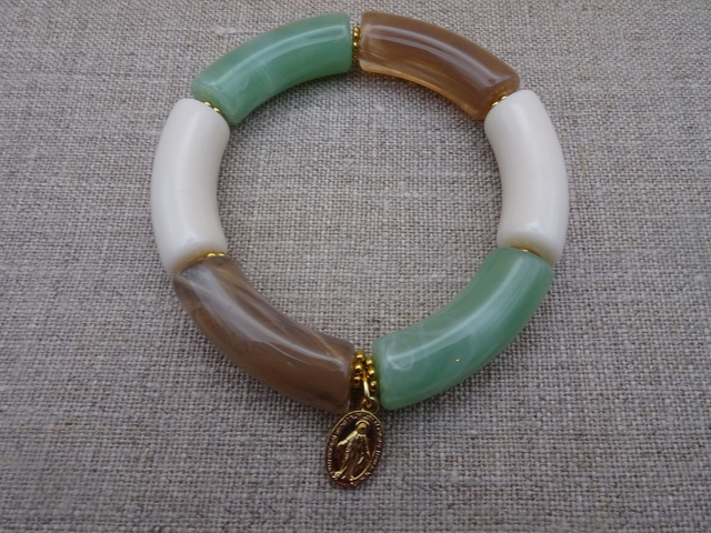 Bracelet médaille miraculeuse, blanc, lichen et taupe