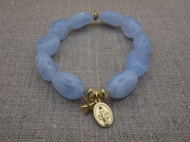 Au centre, une médaille miraculeuse et son étoile de mer ajoutent une dimension spirituelle et symbolique à l’ensemble.